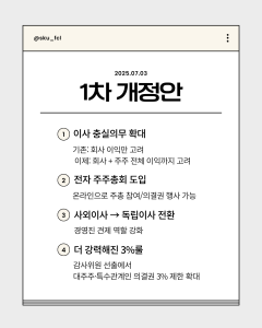 이사회 책임 강화와 소액주주 권리 강화를 통해 시장 신뢰를 높이려는 움직임이에요.
